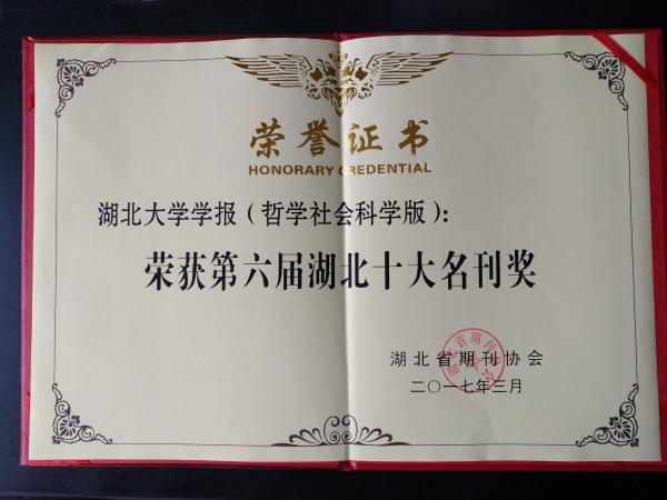 《湖北大学学报》(哲社版)荣获第六届“湖北十大名刊”荣誉称号