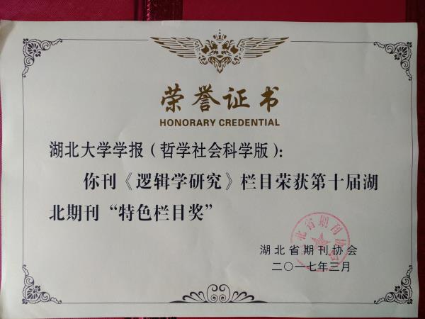 经湖北省新闻出版广电局同意,湖北省期刊协会举办的第六届“湖北十大名刊”、第十届“湖北优秀期刊”评选结果日前揭晓,《湖北大学学报(哲社版)》获得“湖北十大名刊”称号,《逻辑学研究》获第十届湖北期刊“特色栏目奖”。